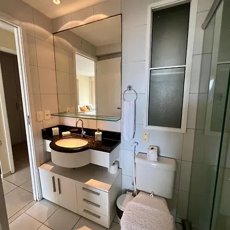 Pousada Apartamentos De Temporada Em Beach Village Residence Praia Do Futuro dispõe de uma banheiro com chuveiro. Secador de cabelo, lençóis de banho e toalhas também garantem uma experiência confortável.